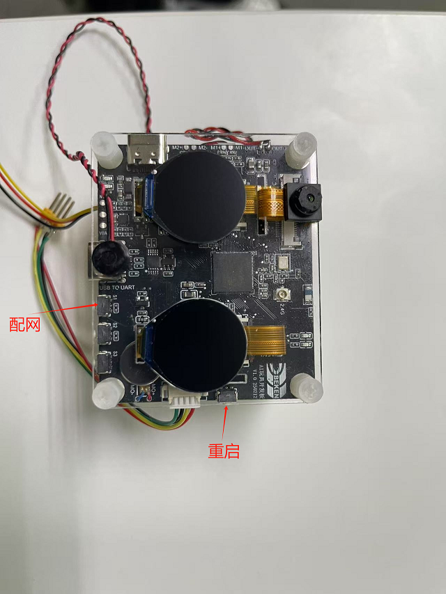 开发板上边有红绿两个状态指示灯,重要信息红灯闪烁,一般性提示绿灯闪烁,以及特殊性提醒红绿灯交替闪烁。 灯效开发参考代码led_blink.c。