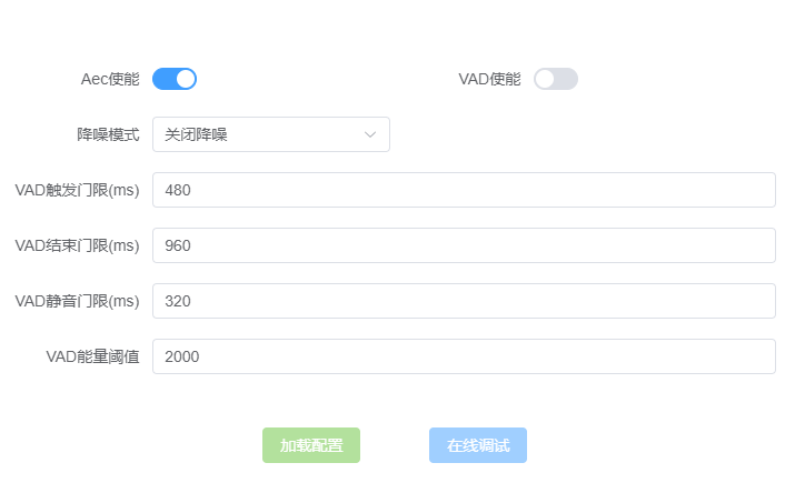VAD 触发门限(ms): 持续检测到语音信号超过触发门限阈值后,判定为语音开始。