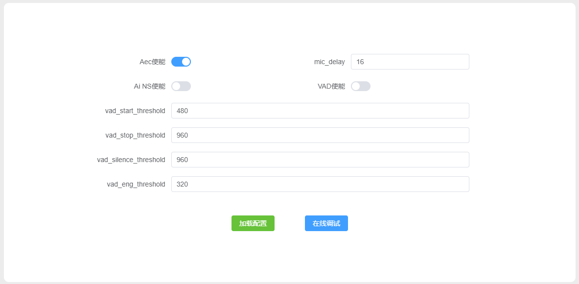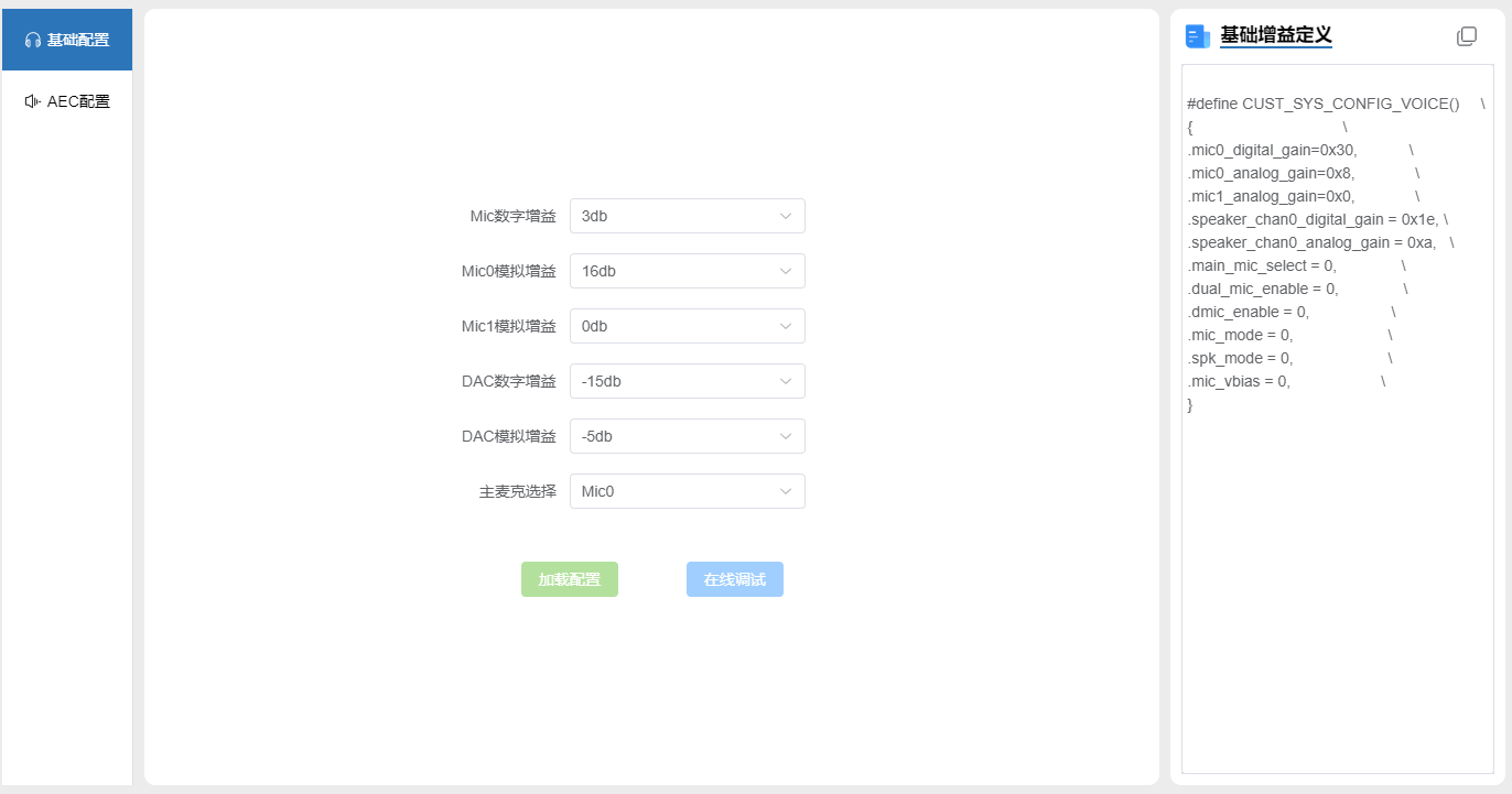 点击 加载配置 按钮,可将开发板配置参数读取到表单中。