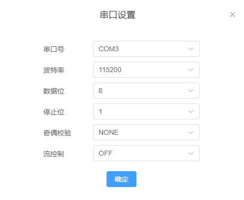 点击串口设置,在弹出的对话框中选择好对应串口信息,点击确定后,将连接对应的串口,如下图所示: