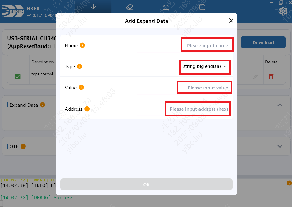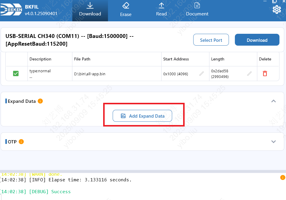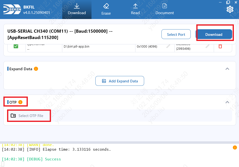 警告: OTP数据一旦烧录将无法修改,请务必确认数据内容完全正确后再进行烧录操作!
