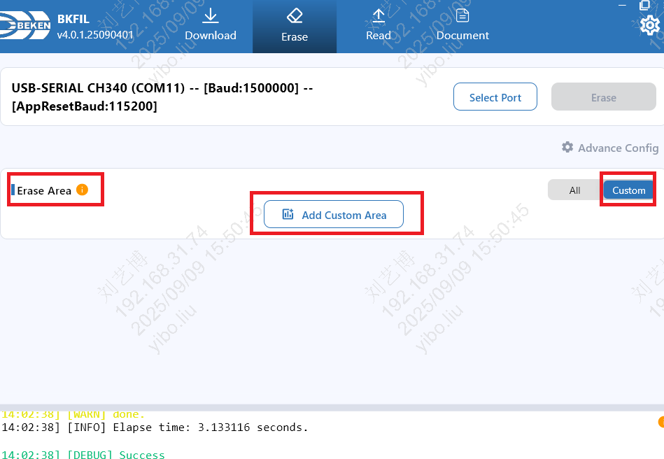 .\bk_loader.exe erase -p COM11 -b 1500000