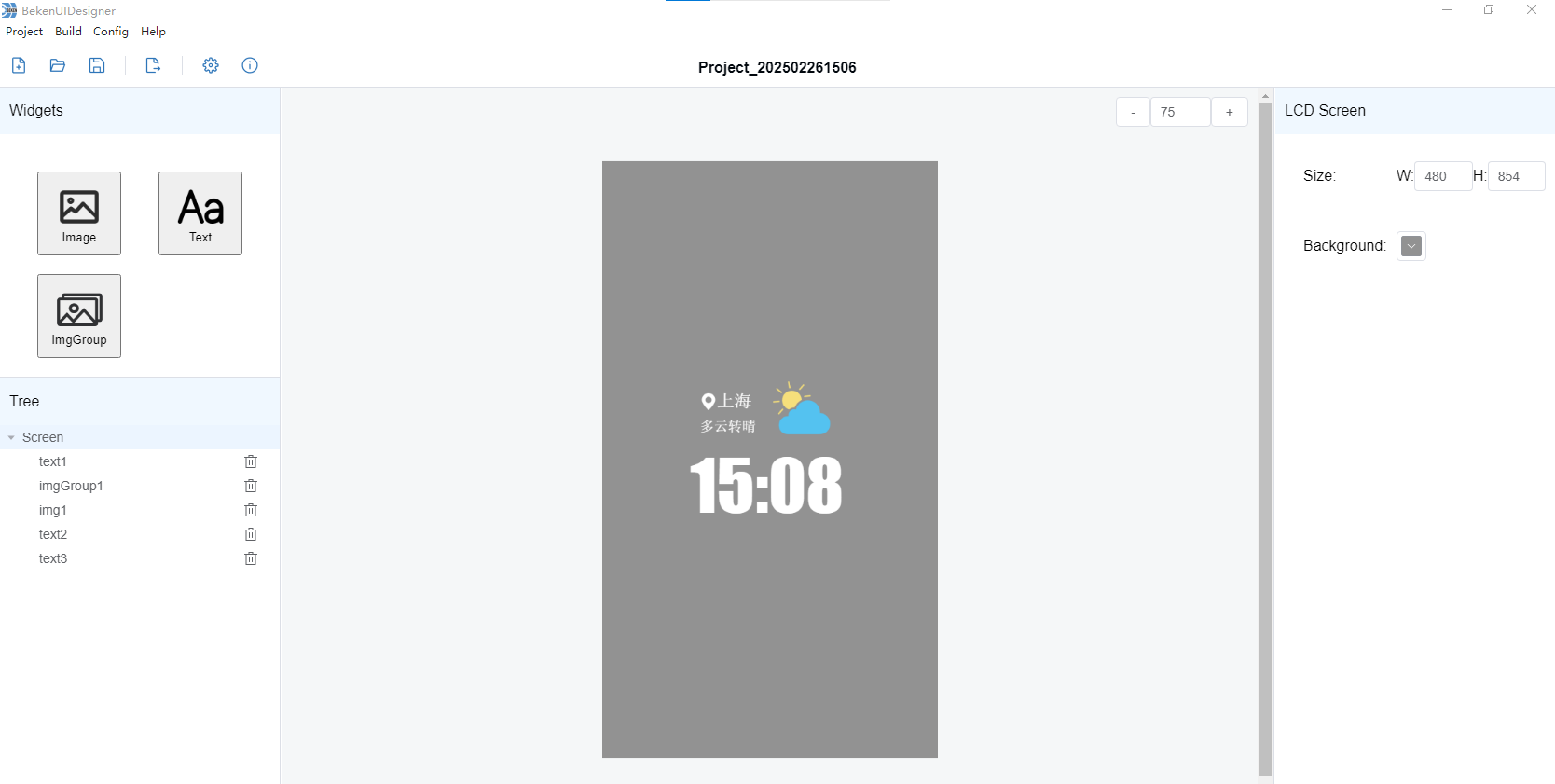 开始界面设计之前,请根据目标LCD屏尺寸设置好画布的尺寸,调整画布背景颜色,如下图:
