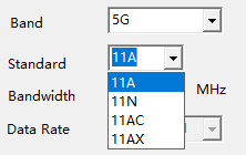 As shown in the figure, you can choose various rates of Bluetooth, Auto is the command of the old standard version of BLE 1Mbps, which is suitable for products with only BLE 1Mbps. LE1M is the command of the new standard version of BLE 1M, similar to the command format of LE2M, S8 and S2, and can be used in the new products that support LE2M and LE long range, both Auto and LE1M can test the 1Mbps rate.