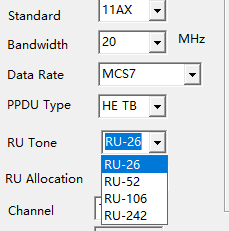 Among them, RU Tone can choose four RUs: RU-26, RU-52, RU-106, and RU-242.