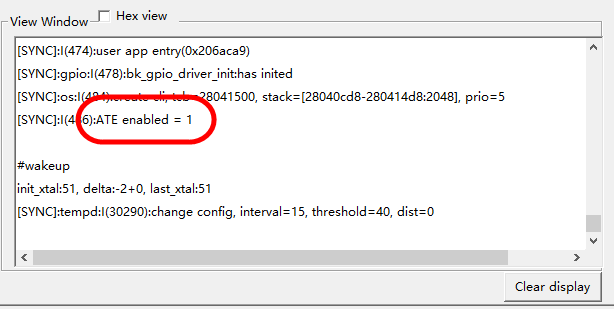 You can judge whether to enter ATE mode by looking at the log window printing of WiFi Test Tool when powering on, as shown in the figure below. Different products print “ate _start” or “ATE enabled = 1”, etc., which means that it has entered ATE mode and can be used to measure RF performance. If there is no print, please make sure that the 1K resistor is connected to ground or confirm with the software engineer whether the chip has really entered ATE mode.