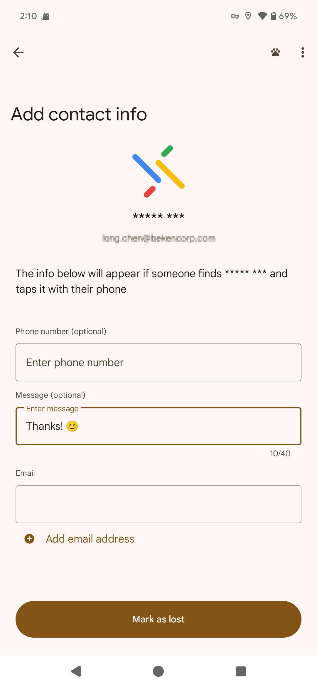 4.Mark the Device as lost