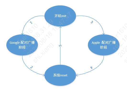 4.若Apple Findmy未绑定,处于配对广播阶段,长按按键10s后,更改findmy type值为1,并写入flash后触发reset。