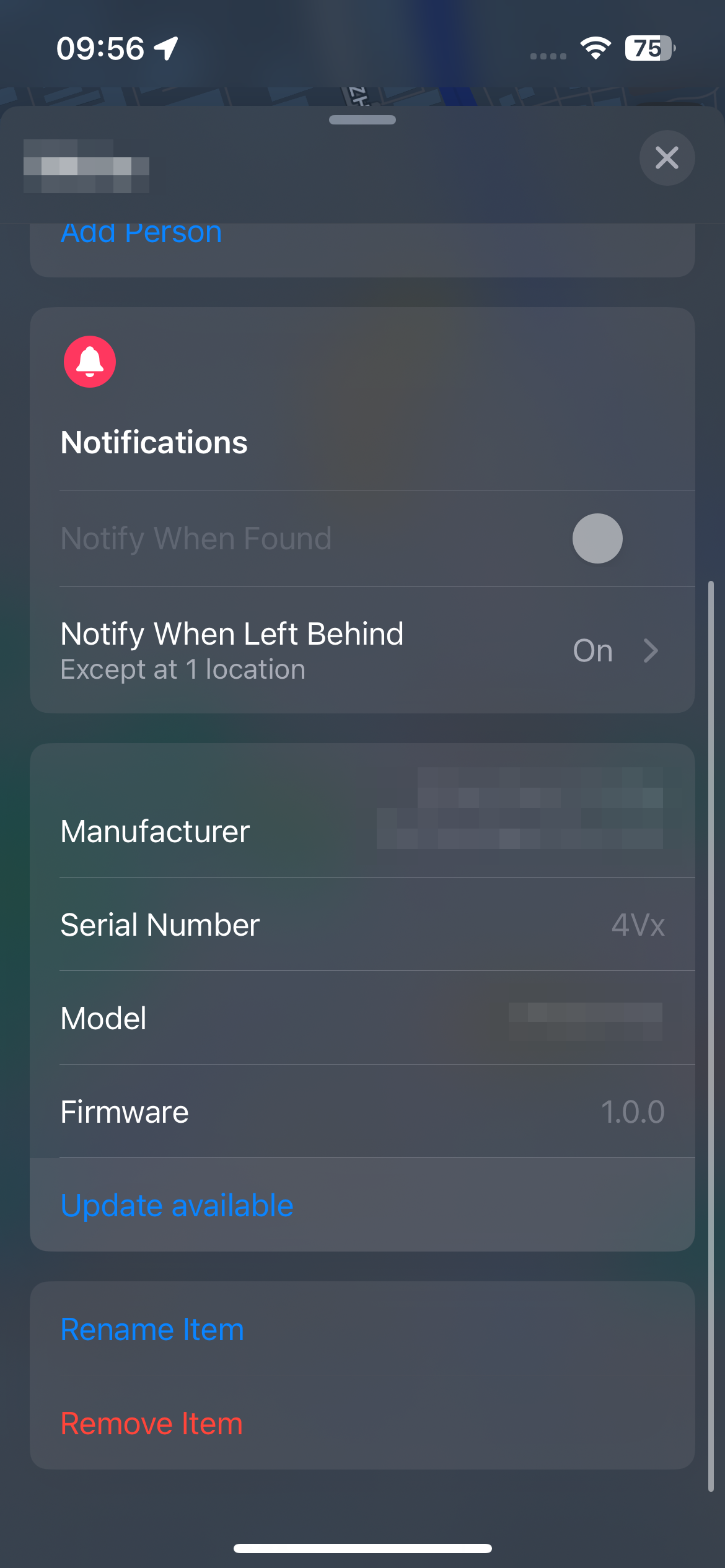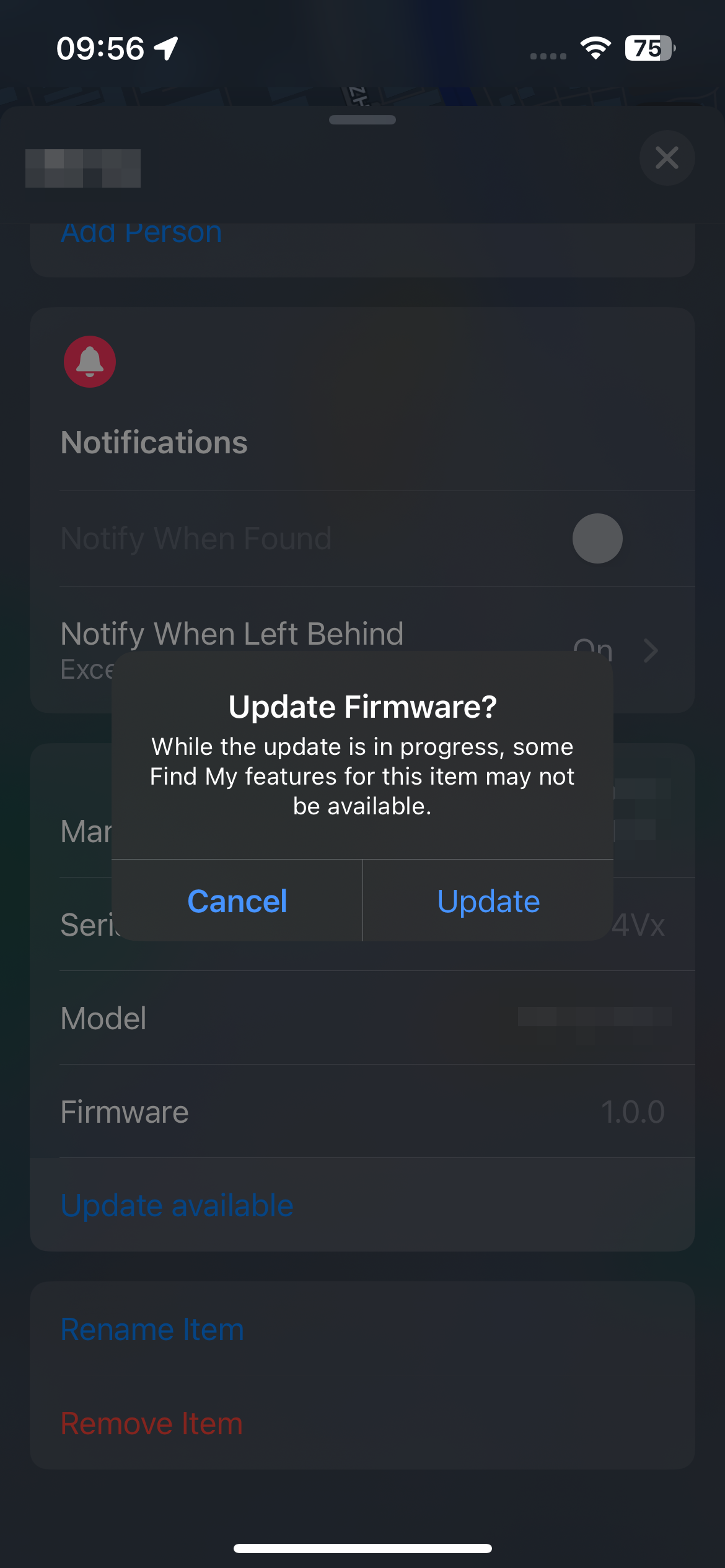 返回 “Find My” 中,重新进入设备页面,可以看到 “有可用更新” 提示,点击 “更新” 即可开始升级。