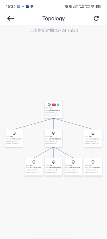 点击群组控制页面右上角的查看拓扑按钮,将跳转到群组拓扑页面。群组拓扑图可以直观的查看群组节点在群组中的层级以及父子关系, 如下图。