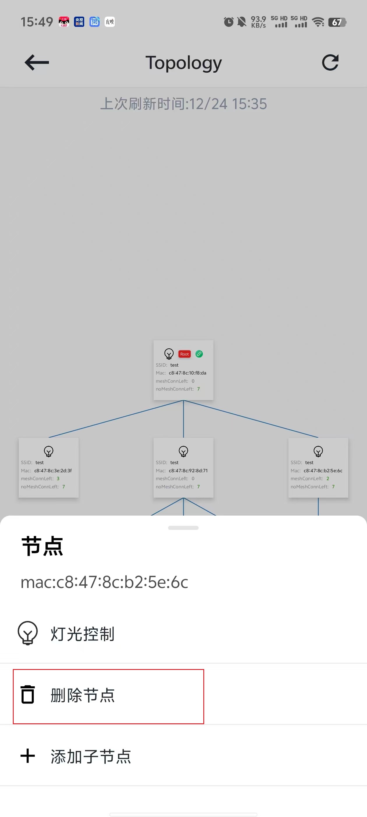 在拓扑结构中,点击想要删除的节点,在弹出的节点操作弹窗中,选择