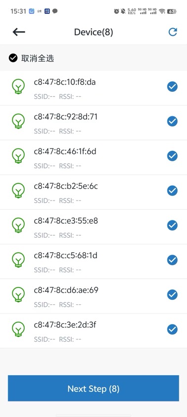 扫描到附近的设备后,选择需要创建群组的设备,点击页面底部的 Next Step 按钮进入群组配置页面。